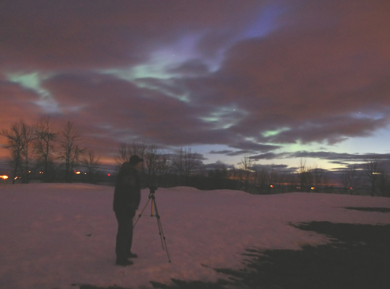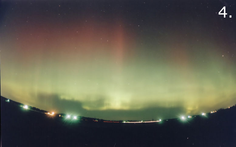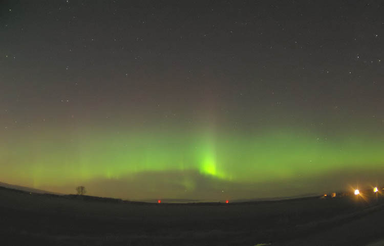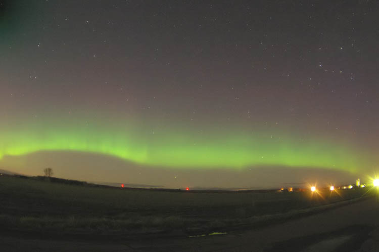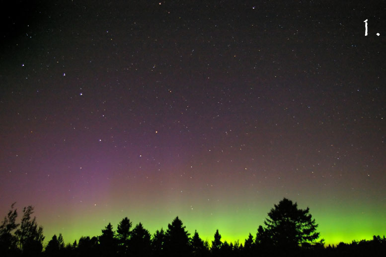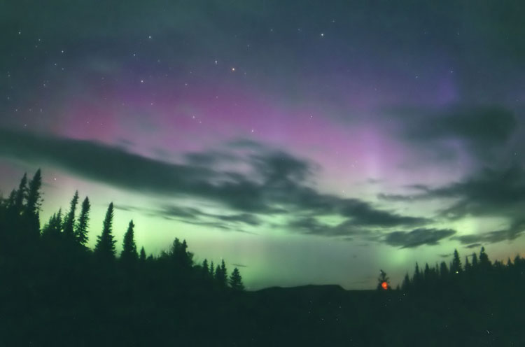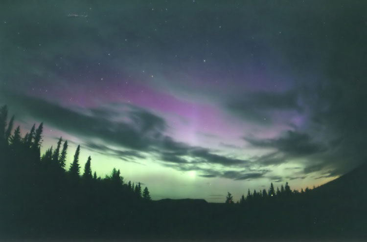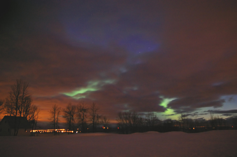 This aurora borealis with purple colors over St-Vallier near to Quebec city Canada captured in april 9 2006 at 4 h 40 am after a painful hunting through a very cloudy night Pentax istDS lens 18mmGilles Boutin Lévis Québec Canada |