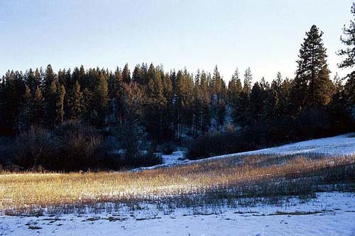 This is Mt. Spokane and the foot hills surrounding Peone Prairie where I live. My family came here in the 1880's and homesteaded in the area. The mountain is about 5800' and the Idaho panhandle is just beyond. I took this photo a couple miles up the road from home. The mountains turn pink at sunset in winter if it is clear. It's pretty, but gets very cold on clear nights. brrrrr