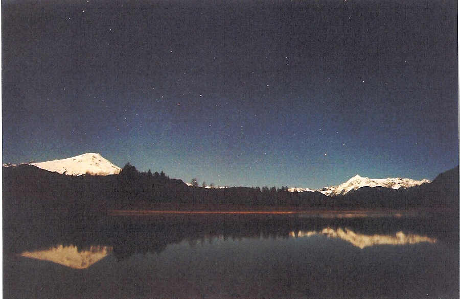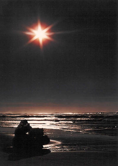 Here's a photo that I think is perfect for the Christmas season. I took iton November 27, 2004 from a lake near my home in Anchorage, Alaska. It shows the nearly full Moon rising over the Chugach Mountains and the star on Mount Gordon Lyon. Believe it or not, but this is not a trick or composite photo. Every year around the Christmas holiday, the U.S. Army lights up this huge star on the slopes of Mt. Gordon Lyon, a 4,100 foot high mountain 10 miles east of downtown Anchorage, Alaska. The star is made up of 325 ordinary 50-watt light..... --> |