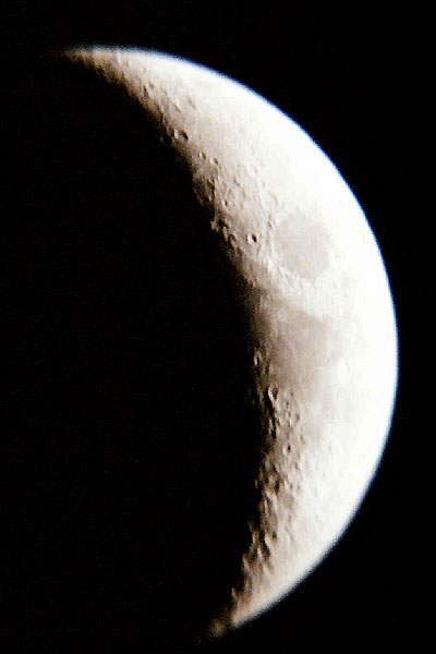 On a rare clear February evening in northwest Washington, earthshine was easily visible. This photo was taken February 22, 2004 with a Canon Digital Rebel, 300mm telephoto lens set at f5.6, ISO setting of 1600, and an exposure time of 1.5 seconds.e-mail See more photos by: Wade B Clark Jr |