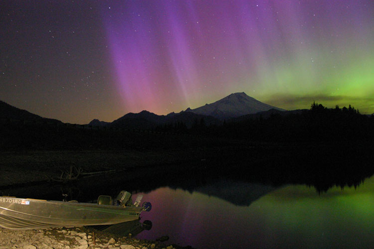 Aurora, August 17, 2003 from Hamilton, Washington, USA. You can see the rayed bands over Mt Josephine even though the photo is overexposed.Wade B Clark Jr - Hamilton, Washington, USA |