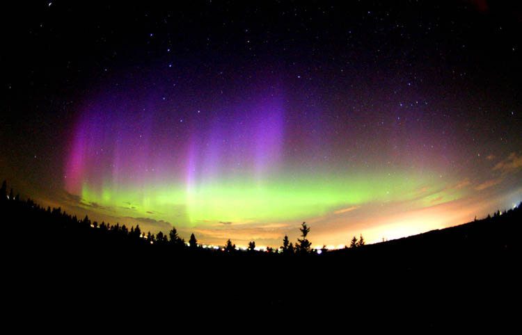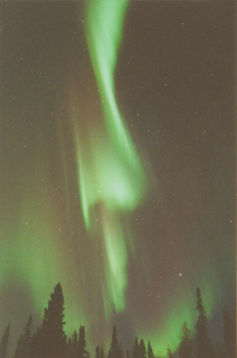 This photo of an aurora corona was taken at Hutch Lake near High Level, Alberta on 3/9/04. Photo details: Fuji 800, 24 mm, f 1.8, exposed for 30 seconds. See more photos by: John Sandy - Deer Park, Washington |