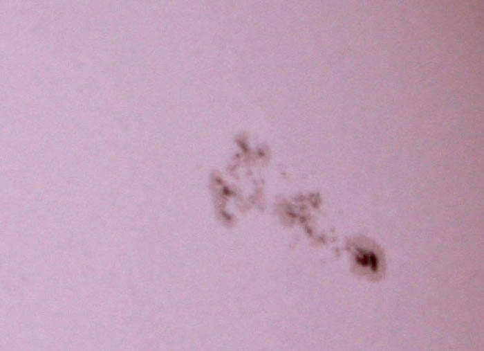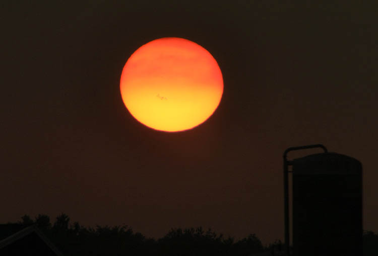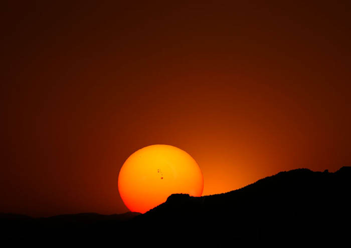 A photo where you can see the big sunspot 649, when the sun sets over a