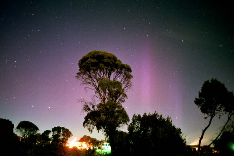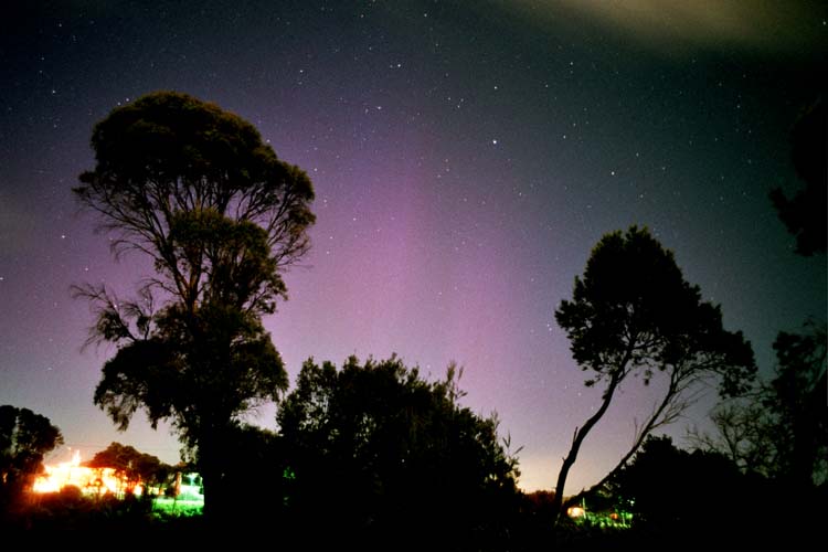 looking south at 9:45 UTC on Nov. 6th, 2001. The Southern Cross and pointers are