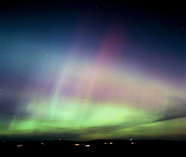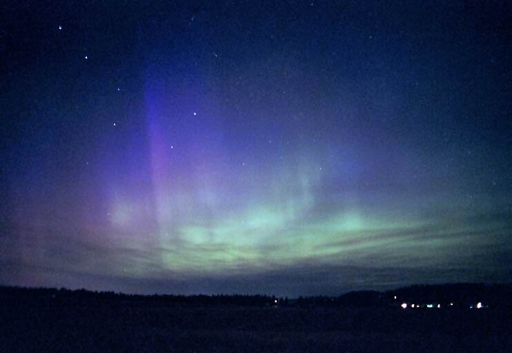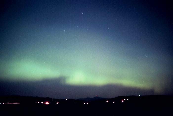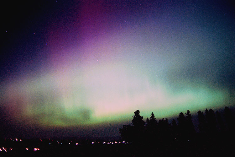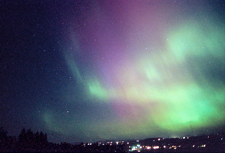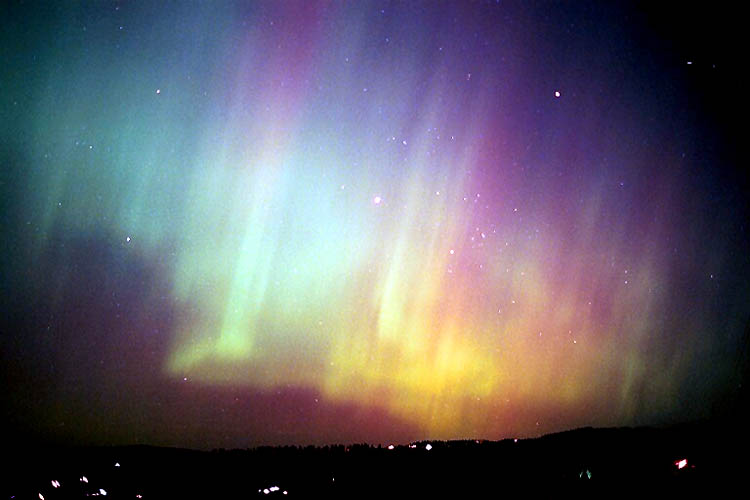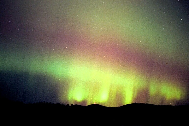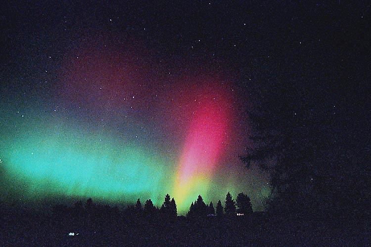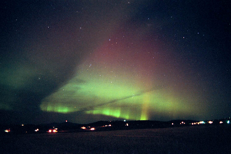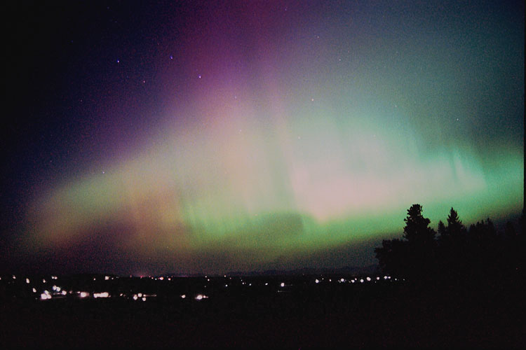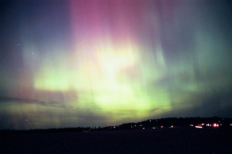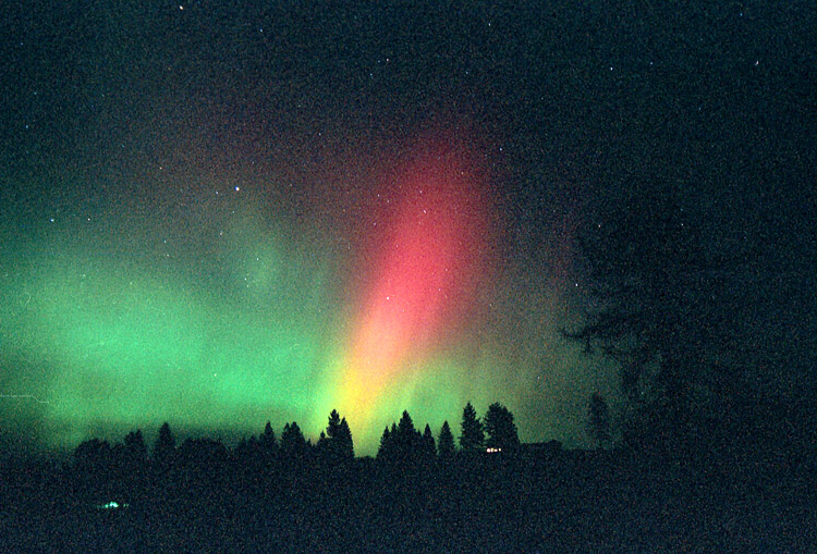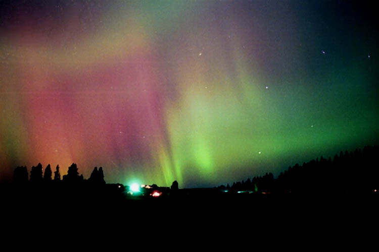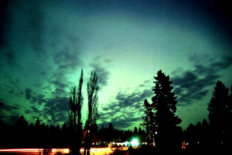 025.jpg (96760 bytes)Dancing lights over a house near Green Bluff in Eastern Washington. This was a 10 second exposure on Fuji 800 film.