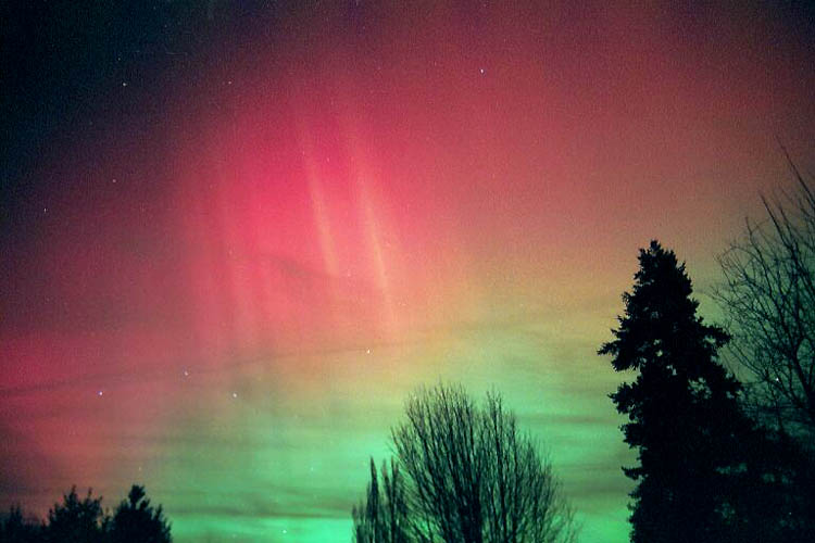 home 002 copy.jpg (47840 bytes)A short display of aurora on Oct 3rd 2000 preceded the big show on the 4th but produce this colorful 15 second shot taken from my yard on Kodak 400 film.