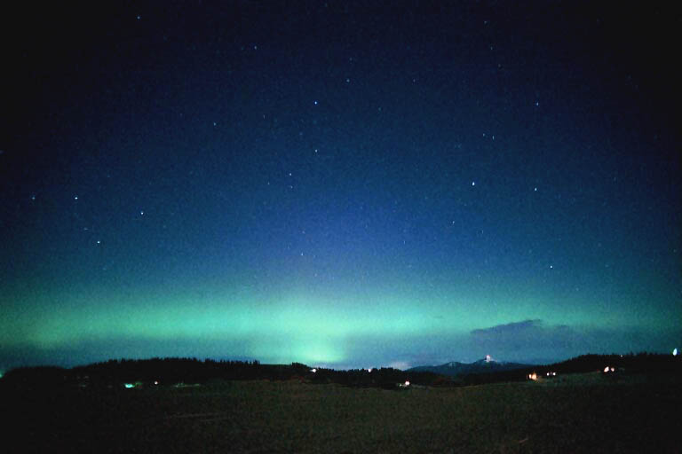 Butte aurora 99.jpg (89684 bytes)Taken near Fairfield Washington on April 4th 1999. 40 second exposure on Kodak 200 film. This was the first aurora photo I ever took.