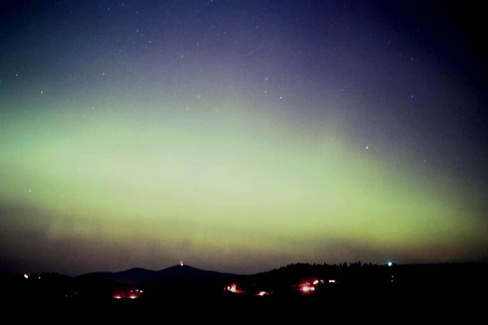 021 copy.jpg (74760 bytes)This mushroom cloud of aurora appeared over Mt. Spokane and the surrounding foothills during the night of Oct. 4th   2000.