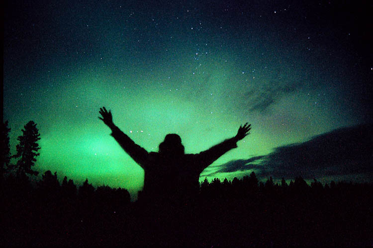 9-3-02-19.jpg (56948 bytes)One of the most important things to remember when photographing aurora's is giving them a proper welcome. This photo was taken shortly after the sky began to glow on September 3rd. I hadn't seen one for weeks, so I was a bit excited.