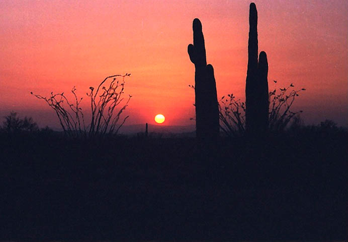 Kofa sunset neg copy.jpg (34884 bytes)Sunset in the Kofa National Wildlife Refuge of SW Arizona in November 1999.