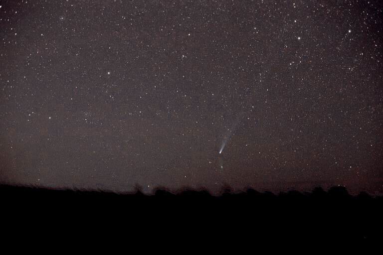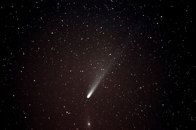 comet032.jpg (52224 bytes) This is how comet Ikeya-Zhang  looks to the unaided eye under very dark skies. It nearly fills the view in a pair of binoculars and has a very bright nucleus and nice tail. Taken at about 9pm local time on April 4th, 2002