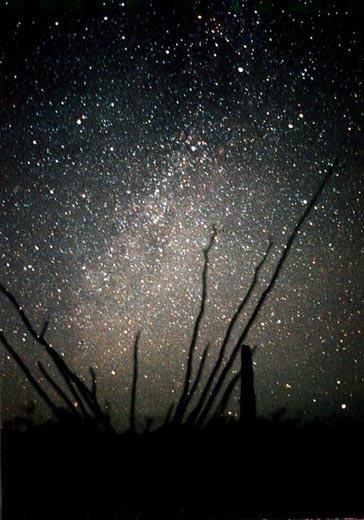 Cygnus setting under the dark skies of  S.W. Arizona in the Kofa National Wildlife Refuge. This was a 30 second shot with a 50 mm lens on Fuji 1600 speed  film in November 1999.