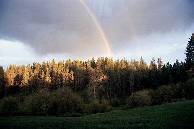 may-03.024.jpg (72709 bytes) Early May showers brought a pair of rainbows to the Pine forest behind my house.  2003