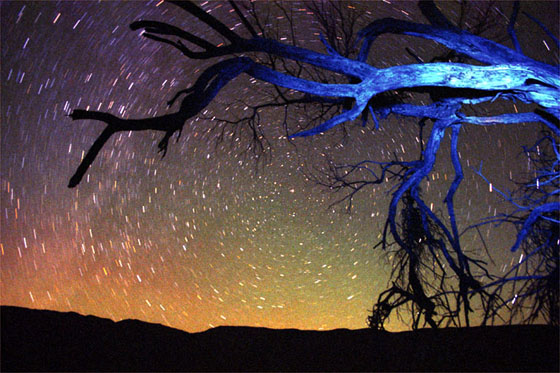 Trails and meteor shot at the Tamarisk Grove Campground in the