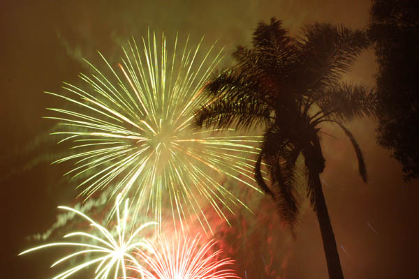 exposure of about 3 seconds of fireworks. Ektachrome 100 film. July Mid