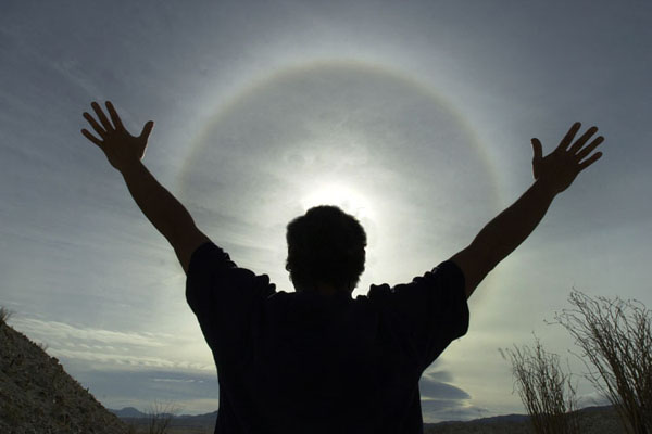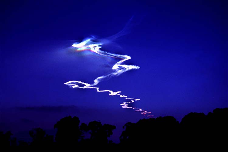 rising while an assistant waves a flashlight in the air. 4 minute exposure
