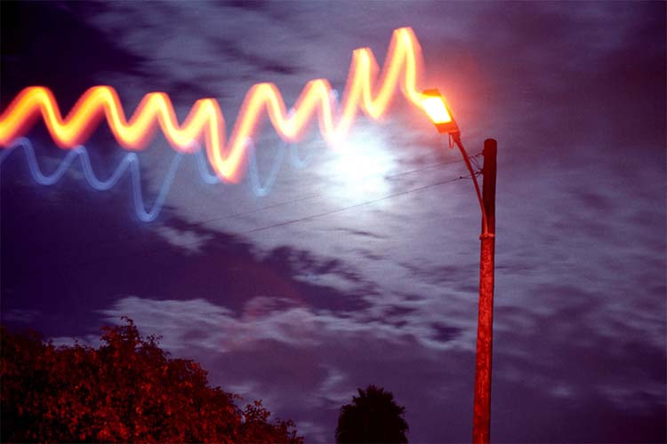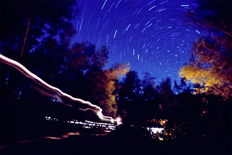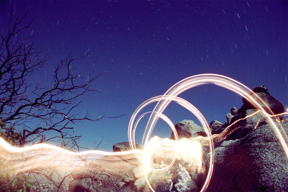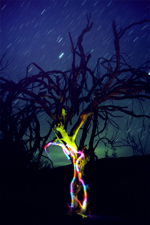 at f 5.6. The streak created by swirling a powerful Maglite through scene.