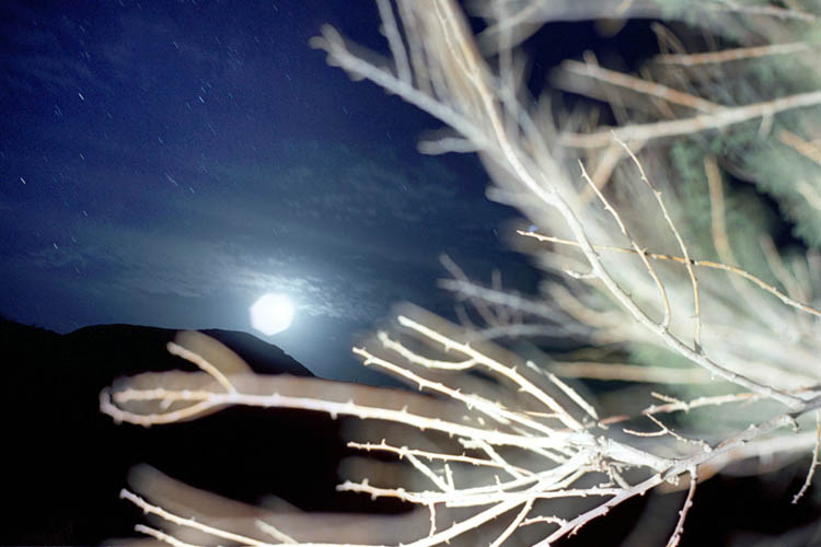 and blue filters used to paint the rocks. 8 minute exposure at f4. Nikkor 17-35mm at 17mm. Kodak SUPRA 800 color negative.