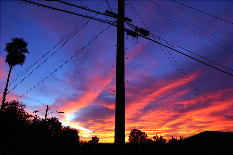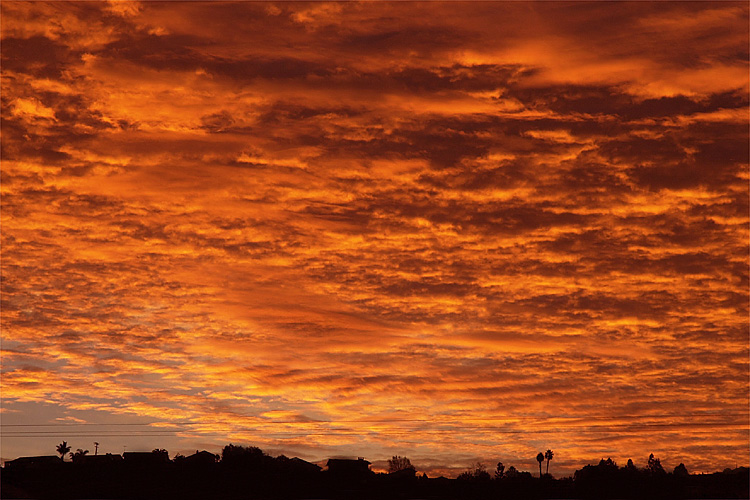 A sunset in the Allied Gardens suburb of San Diego, California near San